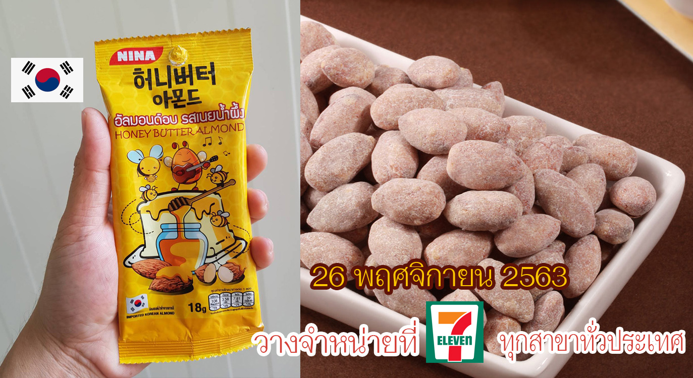 พูดคุยทั่วไป -->ถั่วอัลมอนด์เกาหลี รสเนยน้ำผึ้ง Honey Butter Almond NINA มีจําหน่ายที่ 7-Eleven