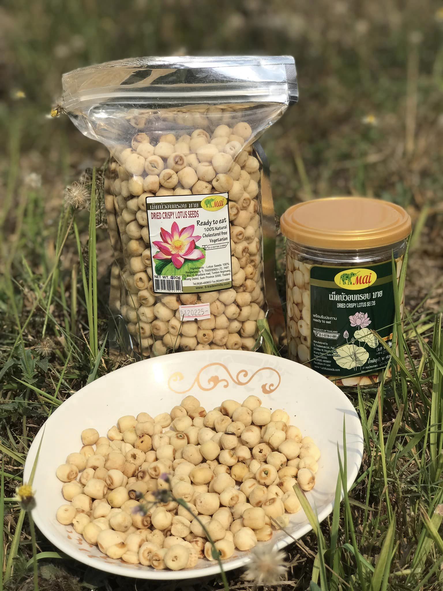 เม็ดบัวอบกรอบ มาย ผลิตจากเม็ดบัวพันธุ์ดี มีคุณค่าทางอาหารสูง ซึ่งประกอบด้วย วิตามินเอ วิตามินซี วิตามินอี เกลือแร่ และ ฟอสฟอรัส อีกทั้งยังมีสรรพคุณทางยาที่ช่วยในการบำรุงหัวใจ บำรุงโลหิต และบำรุงประสาท เหมาะสำหรับเป็นอาหารว่างและของขบเขี้ยวได้ทุกโอกาส